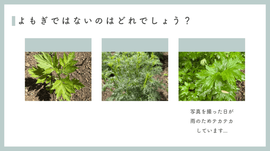 ワークショップの冒頭では、まずよもぎについてご紹介しました。