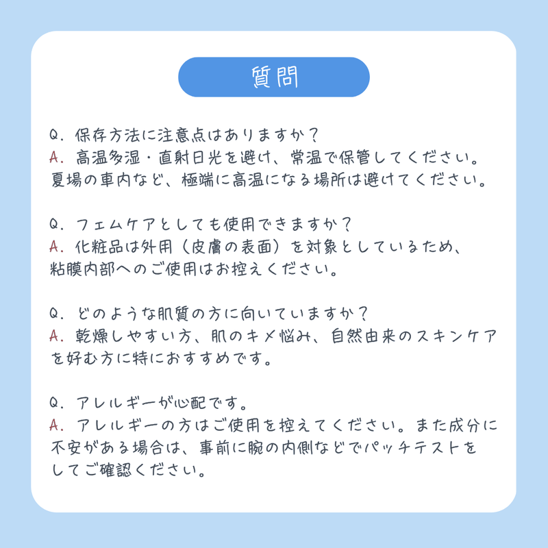 ・お肌に異常がないかご確認のうえご使用ください